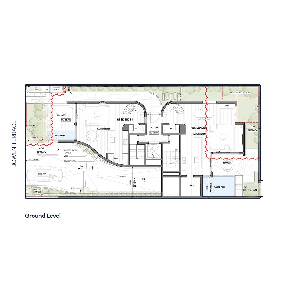 Eden is a 602 square metre parcel of land situated on the Eastern side of New Farm, 200 metres away from the Brisbane River. An unusual aspect to this site is that it contains a side passage which connects Bowen Terrace to Oxley Lane. This is an unexpected bonus, because it gives us extra options for how the new properties can be accessed.