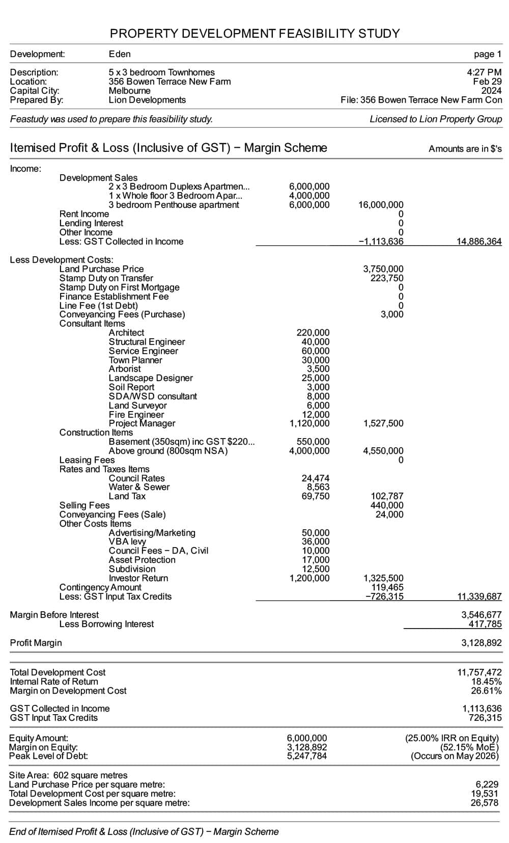 This feasibility study has been prepared using a specialist piece of software called Feastudy.